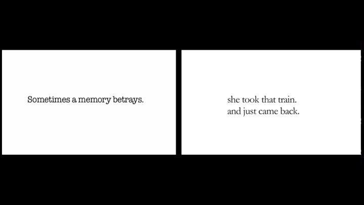 1231 Presented in a split screen, 1231 tells written narratives in relation to time, distance, and language. One screen tells a story about "he" and the other one about "she." Not having met each other in person, Sujin Lee and Pedro Torres worked on the videos separately and then combined the two videos in a split screen format later. The title 1231 is pronunced “twelve thitry-one,” which refers to the time 12:31.