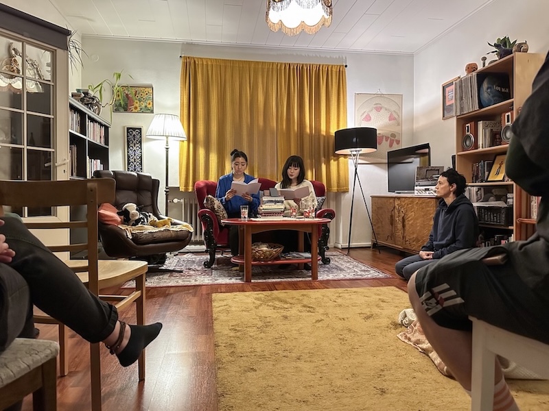 Locations of the Voice In this performance, voices become momentarily connected through the physical act of reading and the very text that they are reading aloud. Voices are shaped by the languages and cultures their bodies and minds have carried within them. Reading aloud is a simple yet profound act, involving a physical “interpretation” of the text through voices—private and public, and condensed and fleeting in nature.